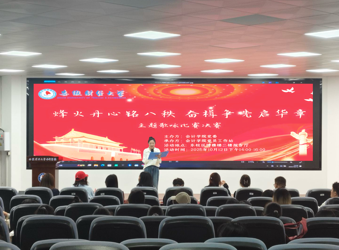 为推动爱国主义教育走深走实,激励新时代青年以史为鉴、勇担使命,20251012日下午,由会计学院党委主办,会计学院党员工作站承办的“烽火丹心铭八秩,奋楫争先启华章”歌咏比赛决赛在博雅楼二楼报告厅举办。本次比赛旨在通过生动丰富的形式,增强全院学生的集体荣誉感和历史使命感。经过初赛环节的激烈比拼,最终有3支团队和7位个人凭借出色的表现脱颖而出,晋级至决赛舞台,继续绽放他们的活力风采。决赛现场,选手们以满含热忱、铿锵有力的歌声开启了比赛的帷幕,收获了在场观众的声声喝彩与由衷赞赏。他们的出色呈现不仅彰显了会计学院学子锐意进取、斗志昂扬的精神状态,更点燃了同学们坚守初心使命、弘扬优良传统、主动向先进看齐的热情与信念。他们用实际行动诠释了承载时代使命、为实现中华民族伟大复兴而砥砺前行的崇高志向。