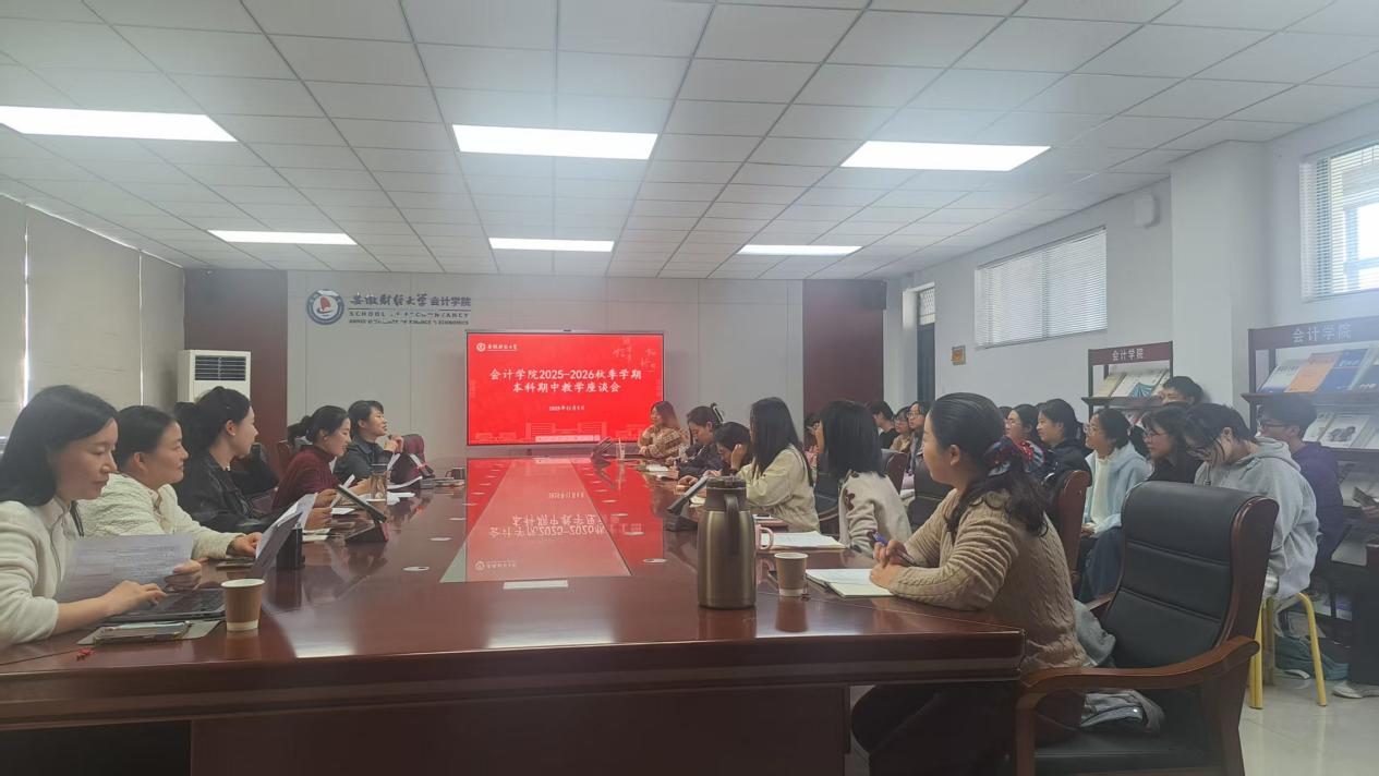 为精准掌握本学期本科教学运行态势,切实倾听学生对教学管理与服务的反馈,以便持续优化育人环境,会计学院于11月5日在博雅楼602会议室召开2025-2026秋季学期本科期中教学座谈会。会计学院副院长周蕾,审计系主任张敏,会计系副主任郁英,财务管理系副主任宋慧,院级督导员周洁老师,姜利老师以及各班学习委员参加本次会议,会议由周蕾主持。
